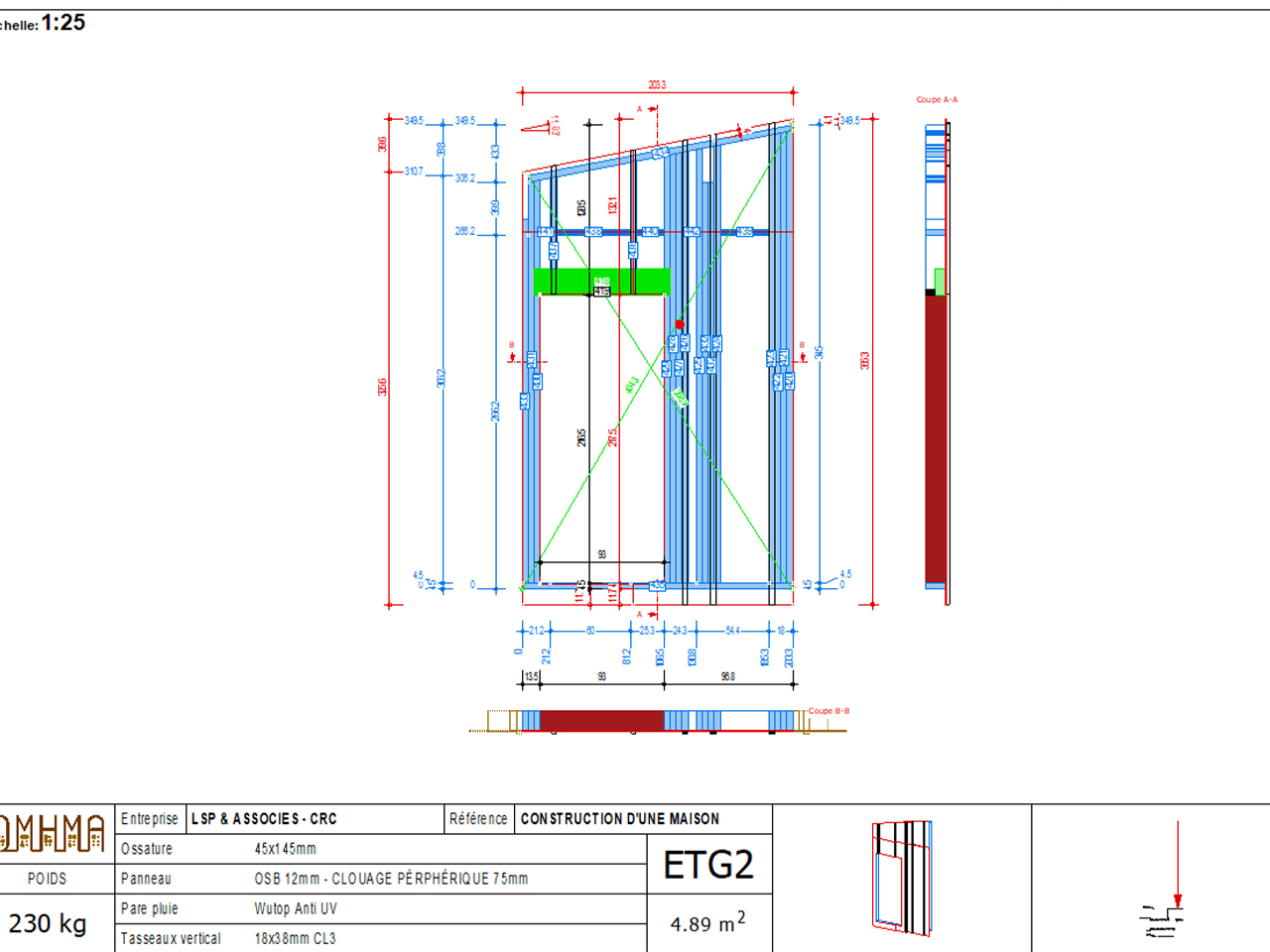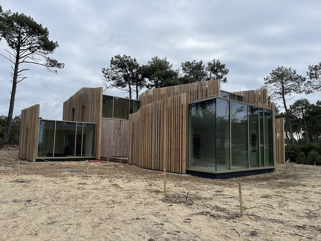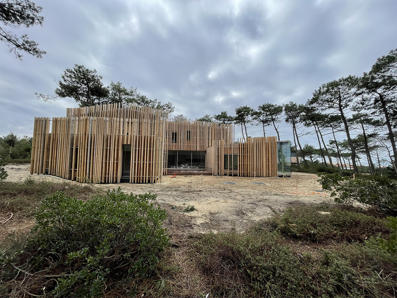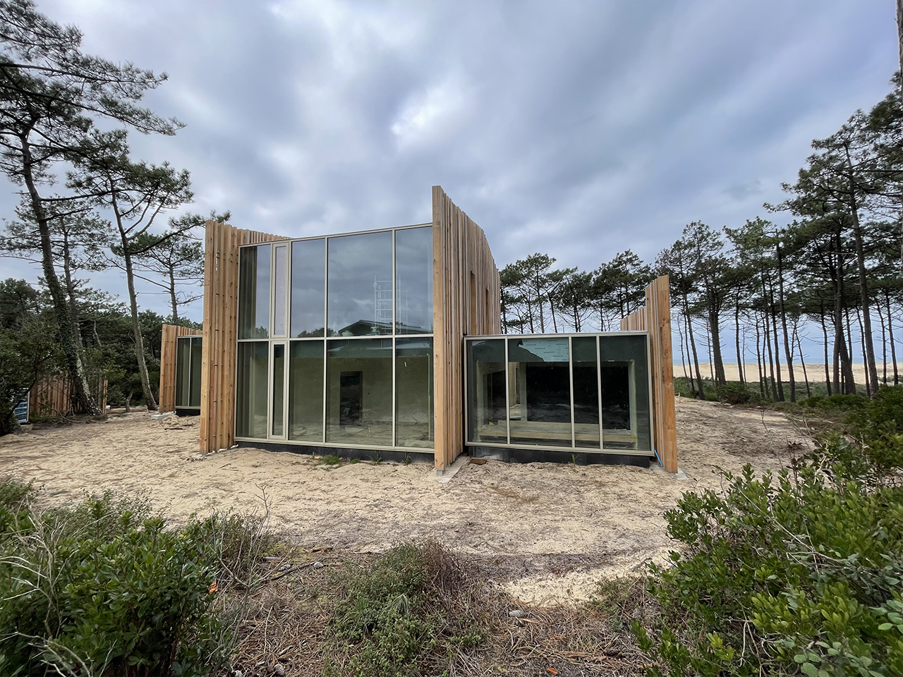 Le projet est une maison d’architecte situé sur la dune avec vue sur l’océan conçue en ossature bois avec des portiques métalliques au niveau des pignons vitrées. Le plancher de l’étage est un plancher collaborant bois / béton.
